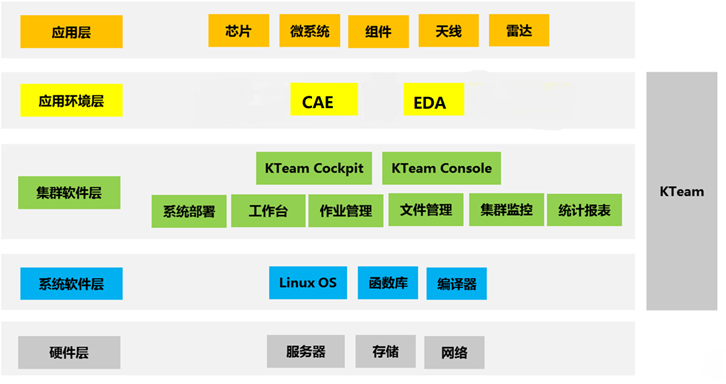 KTeam是基爾科技自主研發(fā)的高性能協(xié)同設計仿真軟件平臺,可實現(xiàn)設計與計算集群資源統(tǒng)一部署、使用、瀏覽、管理、監(jiān)控和統(tǒng)計等,可大幅提高仿真效率,簡化平臺管理。KTeam由應用工作臺、作業(yè)調度模塊、文件管理模塊、集群監(jiān)控模塊、資源統(tǒng)計模塊組成。選用KTeam及其相關服務,可以幫助用戶部署操作系統(tǒng),安裝和測試集群軟件以及應用環(huán)境,基于高性能集群硬件設備,提供傳統(tǒng)的設計環(huán)境和高速的仿真體驗。